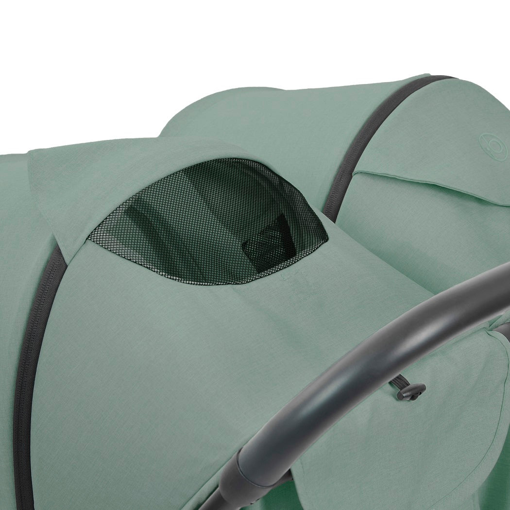 Built for all-year comfort, the Aries Double MAX features infinite recline backrests, two-position adjustable leg rests and ventilated hoods with pop-out sun visors. Peek-a-boo windows let you keep an eye on your little ones while improving airflow on warmer days.