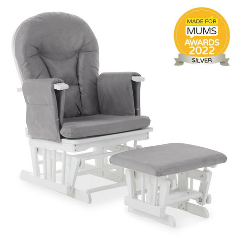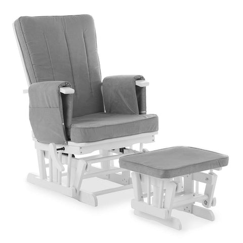 Obaby Reclining Glider Chair & Stool (White with Grey)