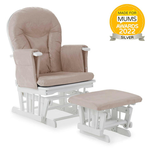 Obaby Reclining Glider Chair & Stool (White with Sand)