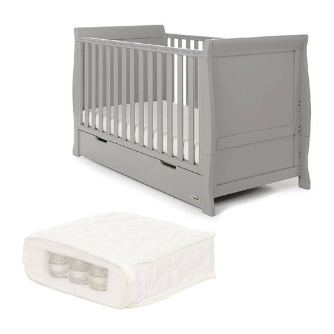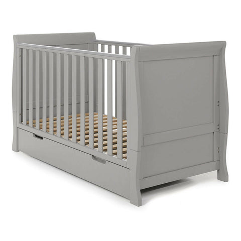 Obaby Stamford Luxe Sleigh Cot Bed with Drawer (Warm Grey)
