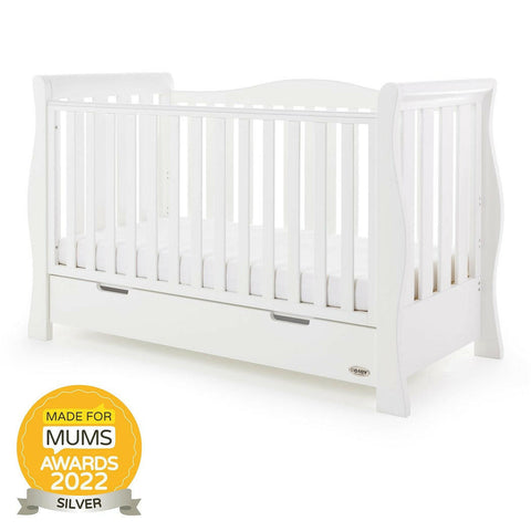 Obaby Stamford Luxe Sleigh Cot Bed with Drawer (White)