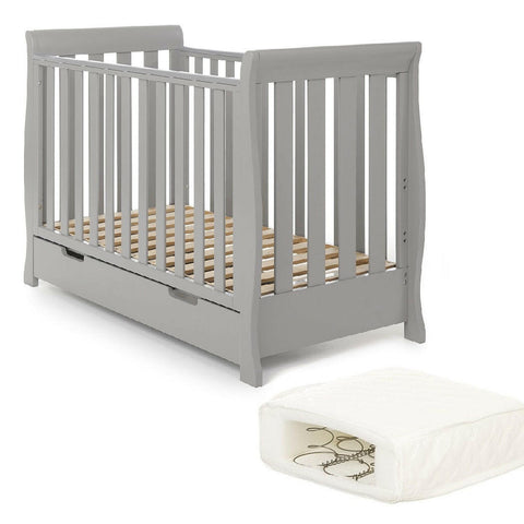Obaby Stamford Mini Sleigh Cot Bed with Drawer (Warm Grey)