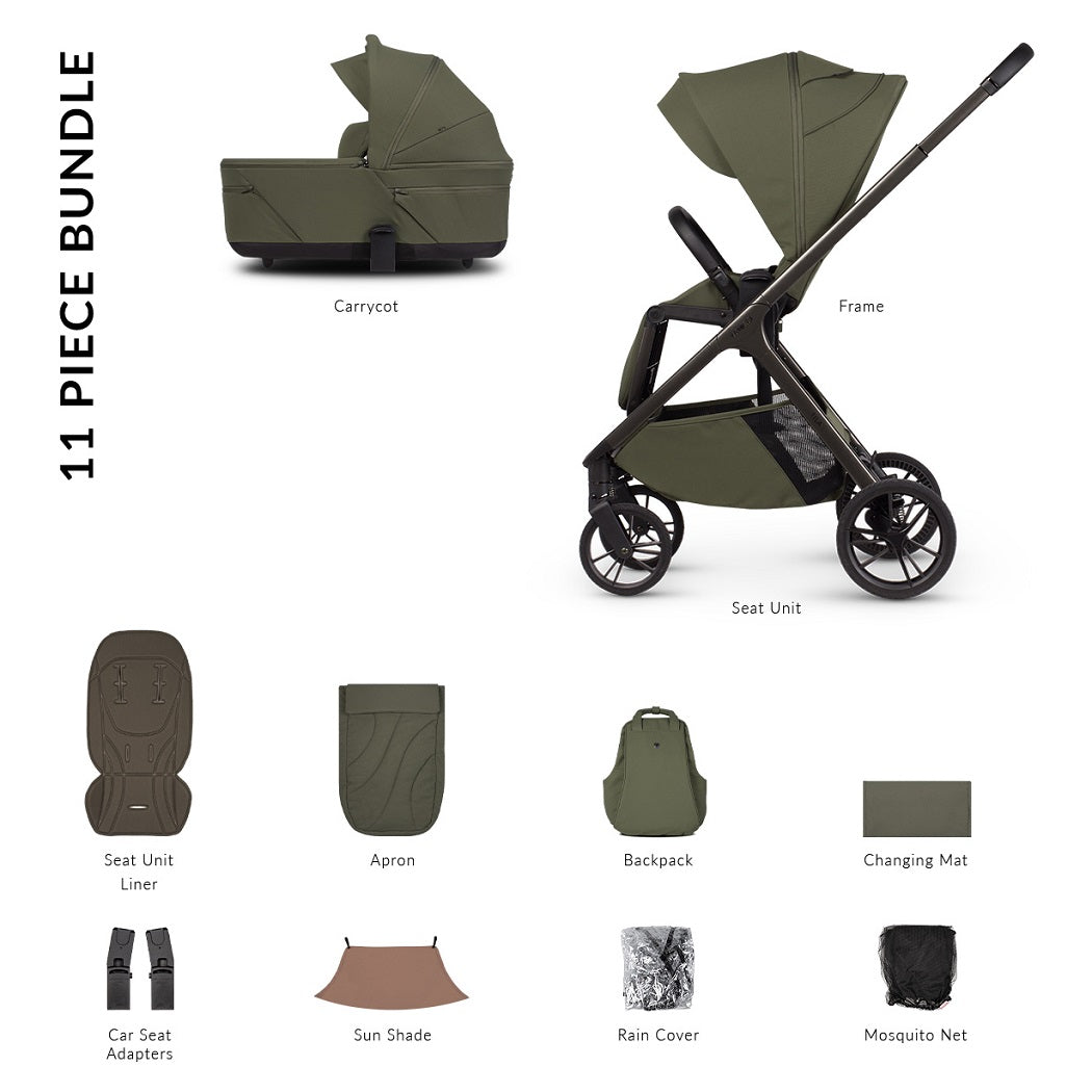 Venicci Tila Essential 11-Piece Pram & Pushchair Set – Olive