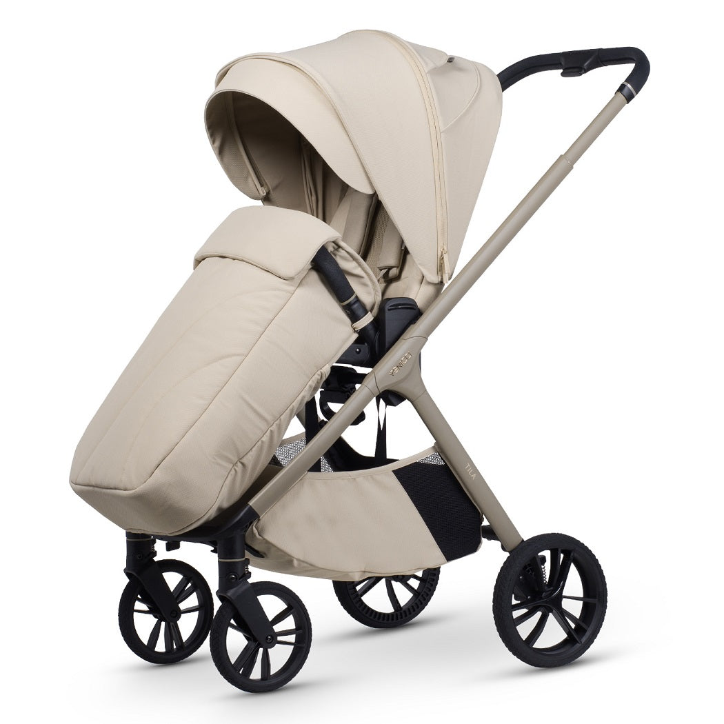 With a width of just 53cm, the Tila is ideal for navigating busy streets, shops and lifts. Despite its compact footprint, premium materials, full-wheel suspension and advanced ventilation ensure outstanding comfort for your baby on every journey.