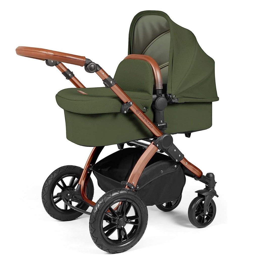 Ickle Bubba Stomp Luxe Travel System (Woodland) with Nimbus 180° Spin i-Size Car Seat, ISOFIX Base and Bubba&Me Crib.