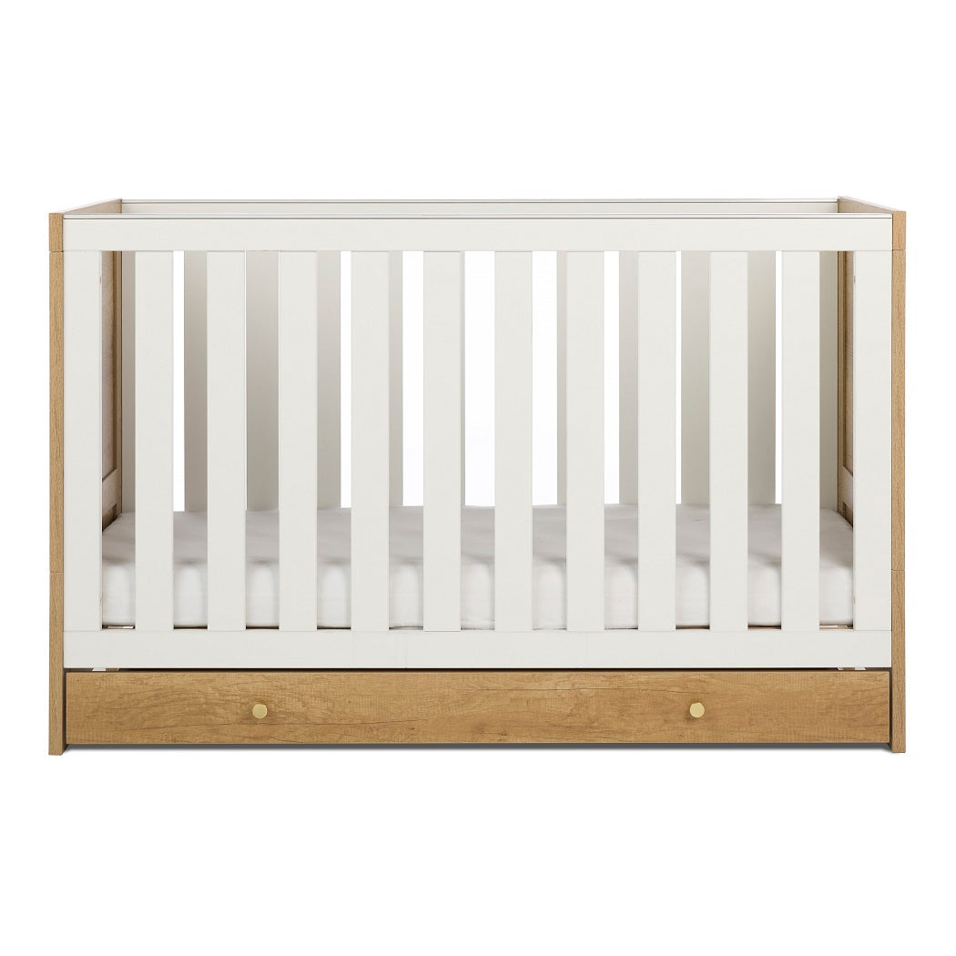 Obaby Nika Cot Bed Oak & White – Convertible Toddler Bed with Optional Drawer